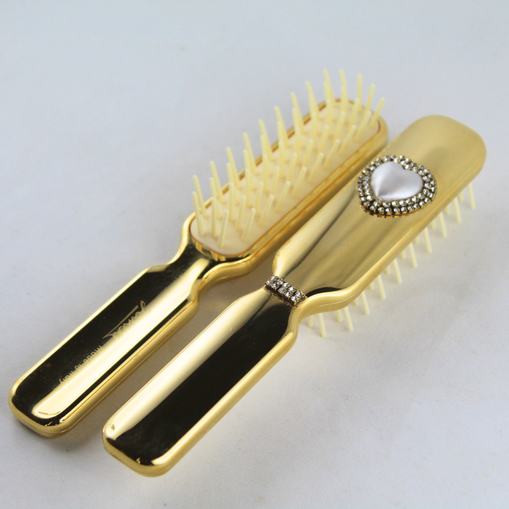 Un piccolo gioiello di eleganza e artigianalità: questa raffinata spazzolina color oro è impreziosita da una delicata perla a forma di cuore e da luminosi cristalli Swarovski, che donano luce e raffinatezza a ogni dettaglio.
